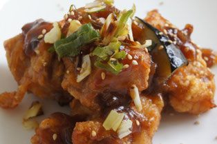 甘辛のねぎたっぷりだれを絡めました。