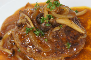 一つ一つ丁寧に手ごねしたハンバーグきのこのデミグラスソースでじっくり煮込みました。
